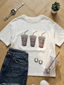Stylish white cotton T-shirt featuring three embellished cup graphics with Balenciaga Paris branding. Soft breathable fabric with a relaxed fit, perfect for casual wear.